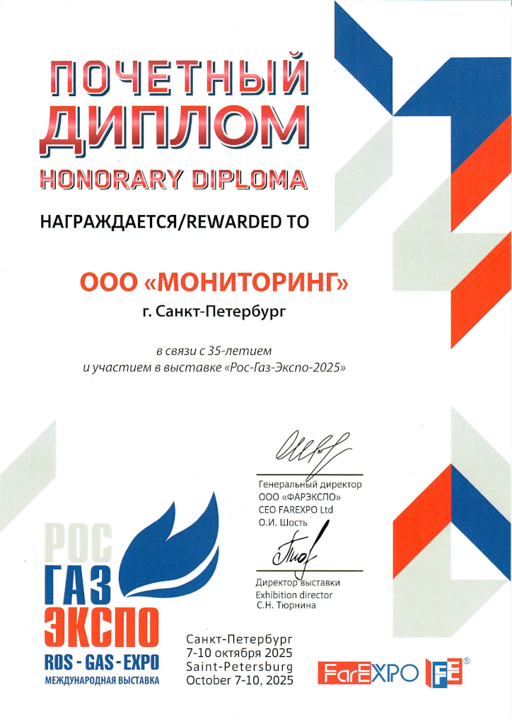 ООО «МОНИТОРИНГ» принял участие в XXVIII Международной специализированной выставке газовой промышленности и технических средств для газового хозяйства «РОС-ГАЗ-ЭКСПО-2025», проведенной в рамках Петербургского Международного Газового Форума в конгрессно-выставочном центре «Экспофорум».